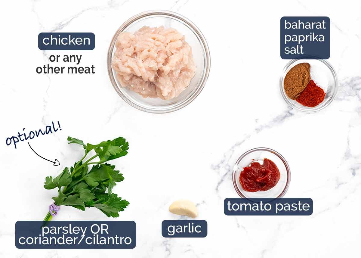 This recipe was a cinch! It’s a low-risk fast recipe so I didn’t need to do much testing on the cooking process. I made the same recipe with beef and pork to make sure they were still tasty using the same quantity of spicing and salt (which they were). I didn’t do lamb because it’s similar to beef in terms of amount of flavour it can take / needs – and I know it’s the best because lamb is a natural protein choice for Lebanese food and flavours. 🙂