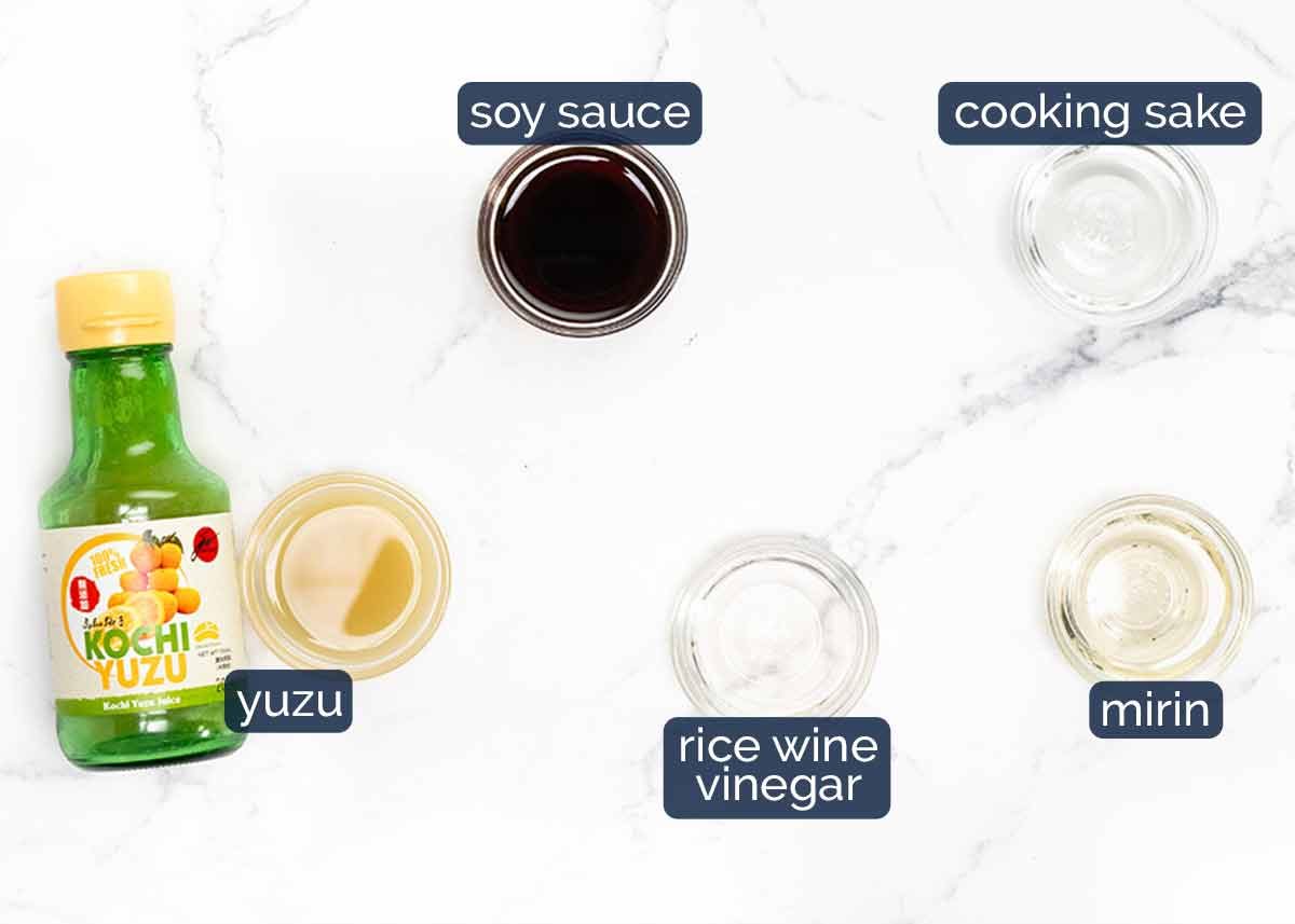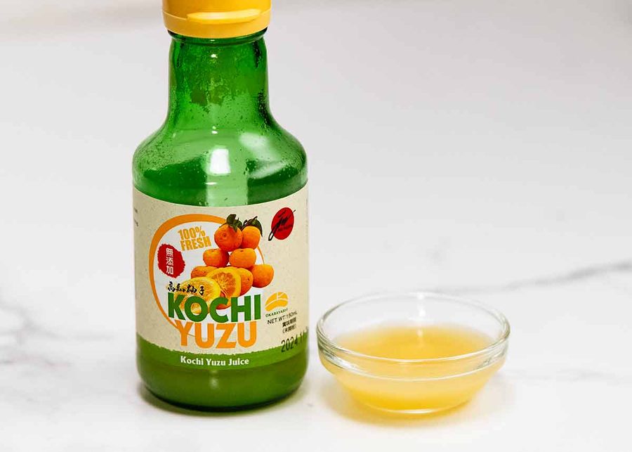 Yuzu – a distinctly Japanese citrus. Chefs go through phases when they’re obsessed with this, with menus everywhere filled with Yuzu this and Yuzu that! Find it in Asian and Japanese grocery stores, they are sold in small bottles like pictured below. Substitute with equal parts lemon and lime juice (it’s actually not far off).