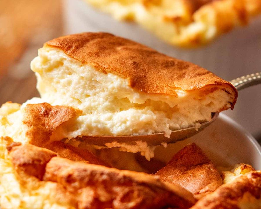 This is a very classic French soufflé made by folding Mornay sauce into whipped egg whites for that golden, fluffy rise. (Mornay sauce is simply béchamel sauce with cheese melted through it.)