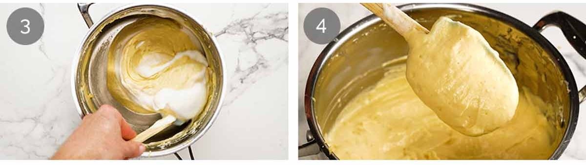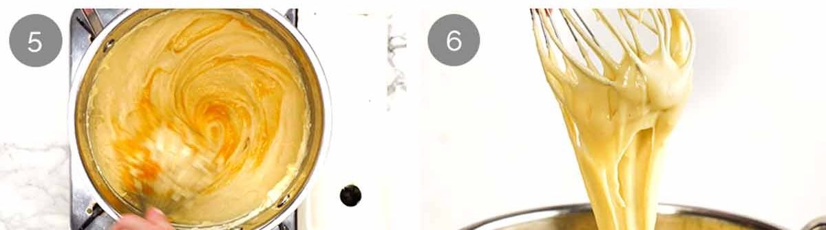 - Turn it into a Mornay sauce – Turn off the heat and whisk in the egg yolks, one at a time, until fully combined (don't worry the egg yolks won't cook). Then, turn the heat back on to medium and whisk in the grated Gruyère until melted through. Scrape down the sides and cover with a lid. Set aside.
