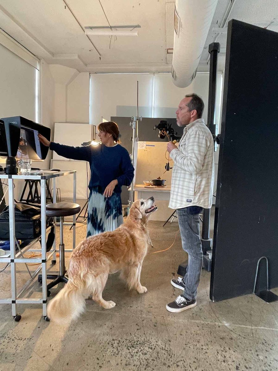 I spent this morning in a photography studio with a team of professionals shooting recipes for a magazine. Dozer came. So much food, so many people to harass. He was in his element! (And his conversion rate was extremely high).