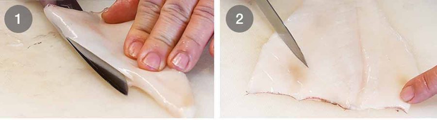 - Cut the squid into pieces 5 x 2cm (2 x 1") rectangles (approximately).