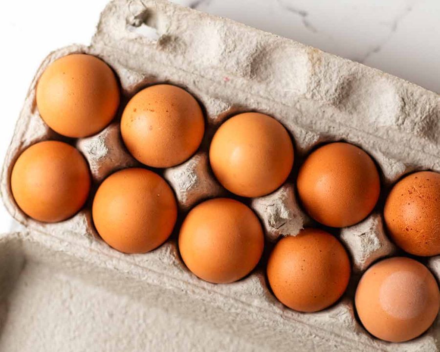 The exact weight of each egg in a carton varies because the industry standards are applied to a total carton weight for a dozen eggs, rather than individual eggs. For example, “large eggs” in Australia need to be a minimum of 600g for a dozen but most are 660g, but less than 700g which is X-large eggs. And each egg within a carton of “large eggs” will vary (again, selfish hens at play here!) and if you weigh them, they can range from 50g to 65g per egg.