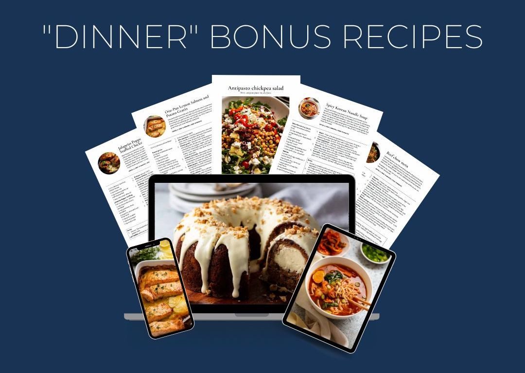 All UK, US and Canadian Dinner cookbook pre-order customers will receive a free bonus digital recipe book that contains ten+ brand new recipes I created especially for you. A thank you gift for early buyers!
