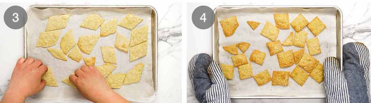 Well, instead of running back to the store to buy crackers because I forgot…. I found this recipe, and boy, it is terrific. I used Everything Bagel instead of just sesame seed, and it was delicious. Great with humus!! I found that I could put both halves of dough on one tray and bake them on middle shelf of my oven. Not sure about 12+10=22 min… 13-14 min. tops is plenty of time, and they are already golden brown. My first batch was near nearly ruined and burned after 18 min! Be careful!