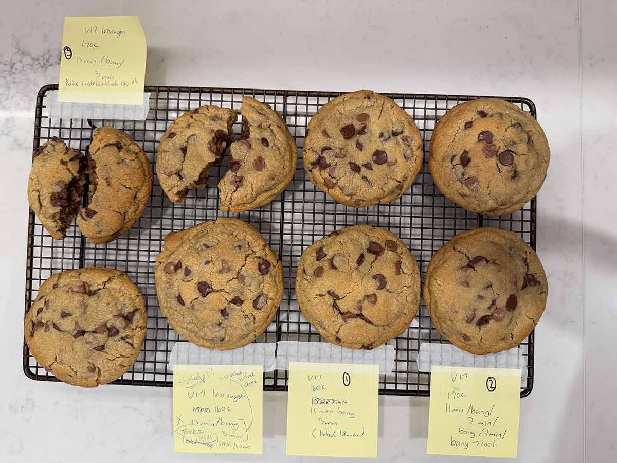 32 batches in, over 250 cookies baked to get to the cookie I was aiming for, tested then tweaked then re-tested to make it as foolproof as possible.