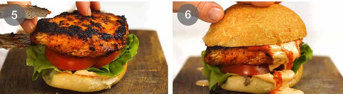 Rest – Once cooked, rest the chicken for 3 to 5 minutes before assembling the burger. This step allows the juices inside the chicken to be re-absorbed into the meat fibres so you have lovely juicy chicken. Don’t skip this step!