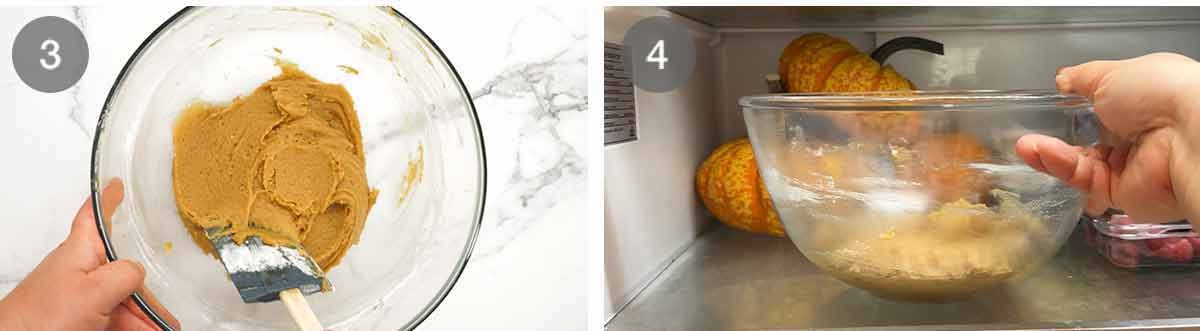 - Chill dough 1 1/2 hours – Add the flour mixture and stir until combined. The mixture should be slightly warm and too soft to roll into balls. Cover and refrigerate for 1 1/2 hours to cool and firm up enough to roll into a log.