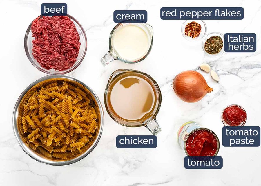 This is a beef pasta cooked with Italian seasonings in a creamy tomato sauce. The epitome of easy homemade comfort food with the convenience of one-pot cooking!