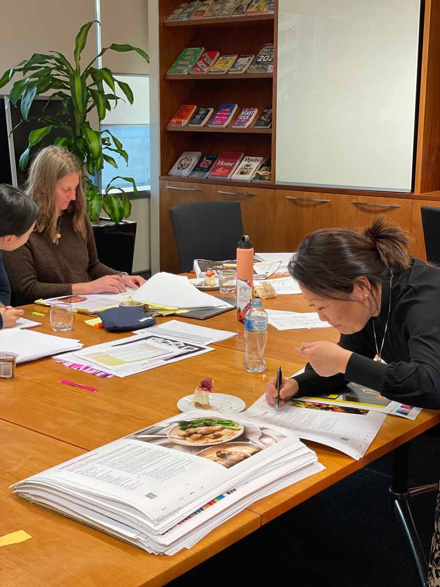 I actually enjoyed the strategic thinking behind this part of the project. Here I am with my publisher, Ingrid from Pan Macmillan, with a photo of all the recipes up on a wall as we went through what I described as “ripping up then stitching the cookbook back together again”!