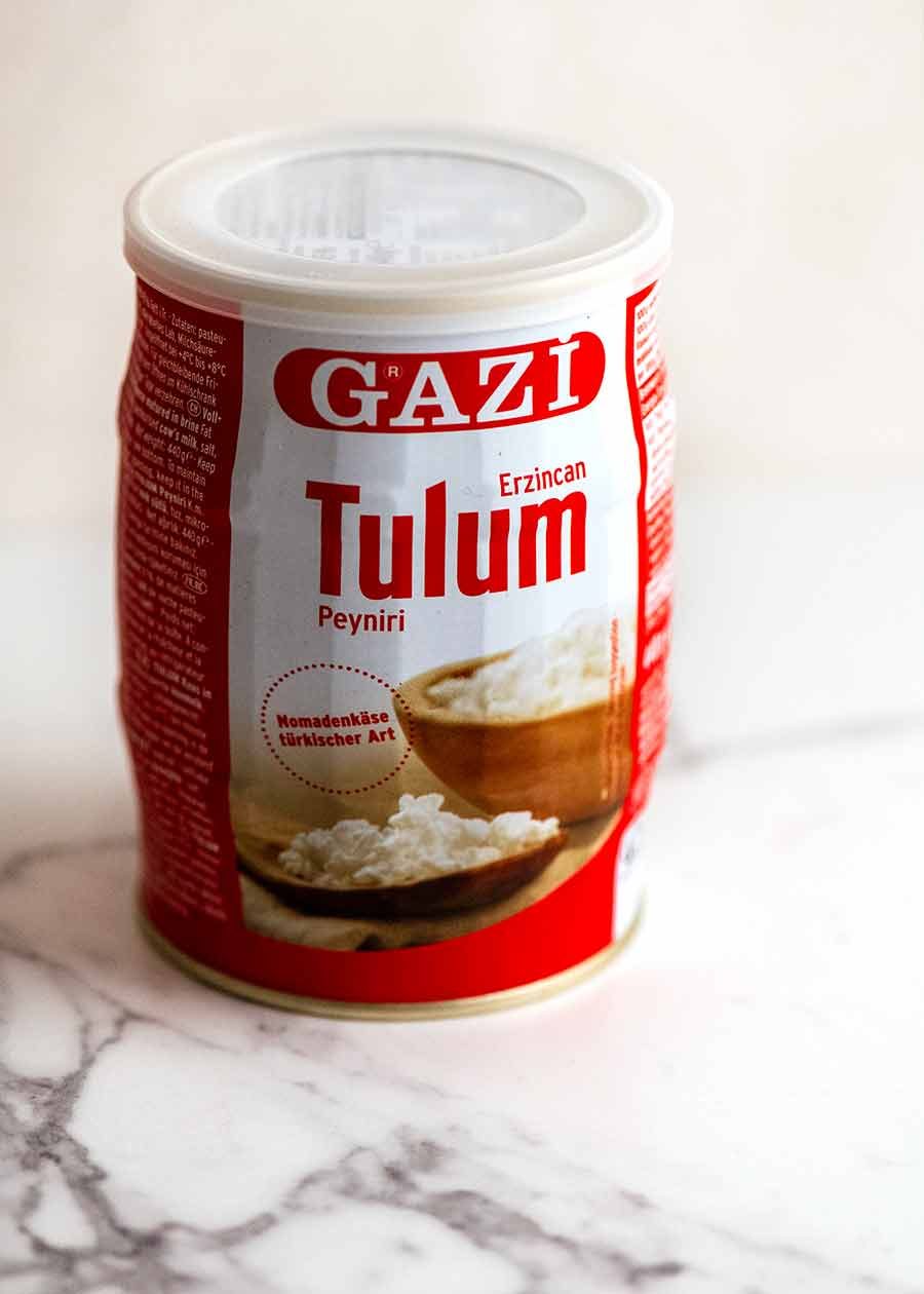 Tulum Turkish cheese (pictured below) – Think of this as a kind of Turkish feta, it crumbles and tastes very similar to it! However it is slightly less salty. The can of tulum pictured below was purchased from a Turkish grocery called Gima Supermarket in Auburn (Sydney). Substitute with feta!
