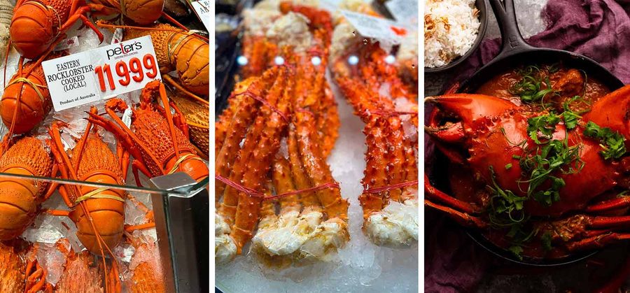 King crab – People love king crab because of the extremely meaty legs and claws, and the firm, sweet flesh. But it’s expensive! We recommend giving frozen cooked king crab a miss. Over the years, we’ve found it hit and miss, as it’s sometimes disappointingly flavourless – such a waste of money 😭. If you want king crab, buy the uncooked legs and cook yourself. Note that king crab is mostly imported and as a general rule, this can affect reliability of quality. Excess freezing really seems to degrade the quality of crab.