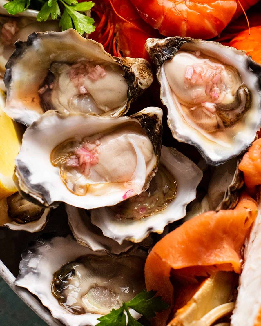 - Oyster – Both Sydney Rock (smaller, stronger flavour) and Pacific (fleshier, cleaner flavour) oysters are great. These are the two varieties here in Australia. The quality and flavour comes down to where and how they are grown.