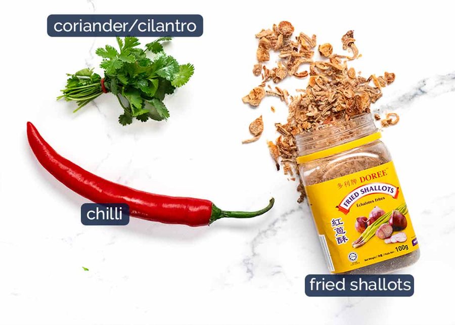 Crispy fried shallot pieces – salty and oily, these are sold in jars and packets at large grocery stores these days, but cheaper at Asian stores! Terrific garnish for all things Asian. I use it liberally – it’s a frequent player in my recipes.