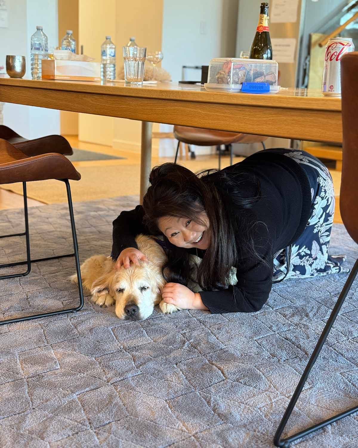 Dozer spends a lot of time sleeping under the table – so I spend a lot of time under there too. 🙂