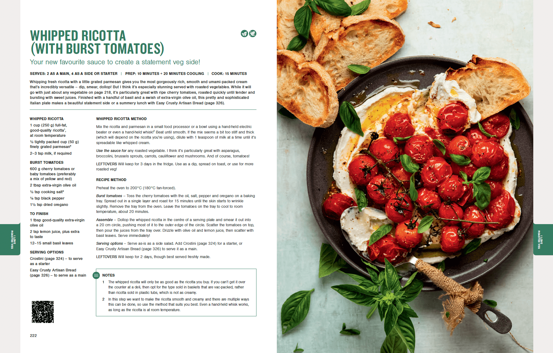 Actually, whipped ricotta had a starring role in my second cookbook, Tonight, as an easy way to elevate virtually any roasted vegetable to event-worthy (see the handy How to Roast Any Vegetable chart on page 218). I boldly said it would be your “new favourite sauce to create a statement veg side”. I stand by that! 🙂